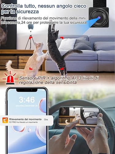 QZT Telecamera Wireless WI-FI, Telecamere 1080P con Audio e Video, Funzione di Visione Notturna con Allarme di Rilevamento del Movimento, Telecamera di Sorveglianza Controllato dall'APP TuyaSmart