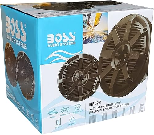 KIT SET PER BOSS AUDIO SYSTEMS MR52B 2 altoparlanti marini neri 2 vie 5,25' 13 cm 130 mm 75 watt rms 150 watt max impermeabili mare piscina barca hotel, a coppia + faston di montaggio