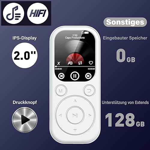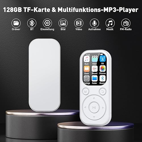 128GB Lettore MP3 con Bluetooth 5.4, Lettore Musicale con Radio FM, Registratore Vocale, Suono HiFi, Funzione E-book, Auricolari Inclusi (Bianco)