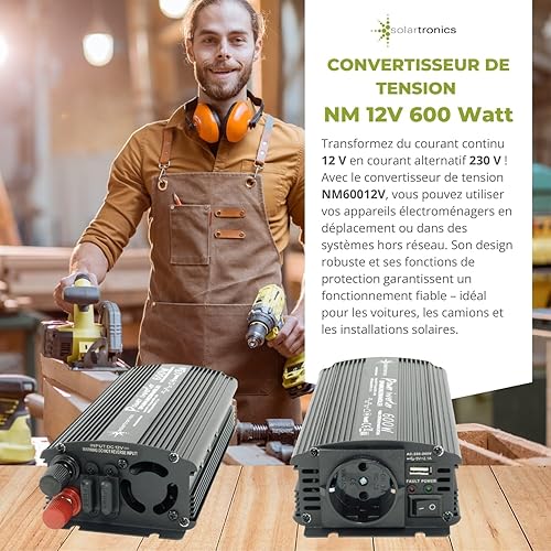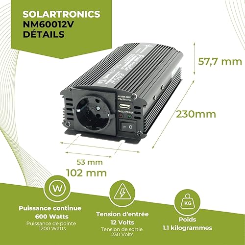 Trasformatore di tensione NM600, 12 V, 600 W, nero, potenza di picco 1200 Watt, inverter da 12 V a 230 V, compatibile con batteria LiFePO4, al litio, al piombo o AGM, con connettore