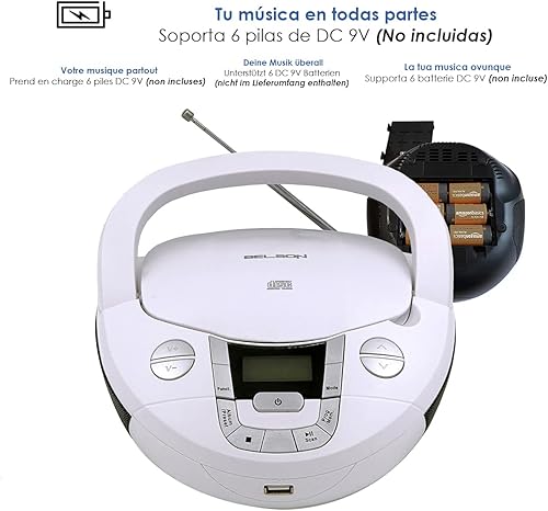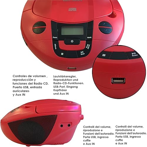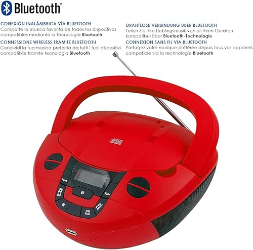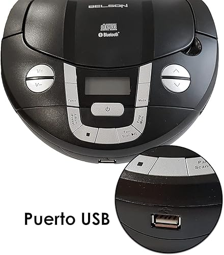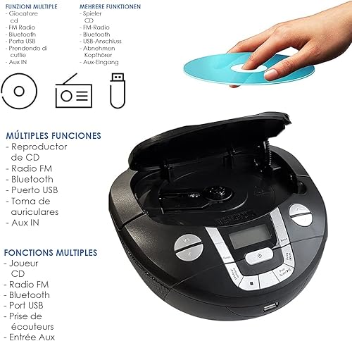 BSL - PCD-31, Radio CD portatile boombox con Bluetooth, colore nero, 2 W di potenza RMS, radio FM, porta USB, lettore MP3, display LCD, AUX IN, uscita auricolari