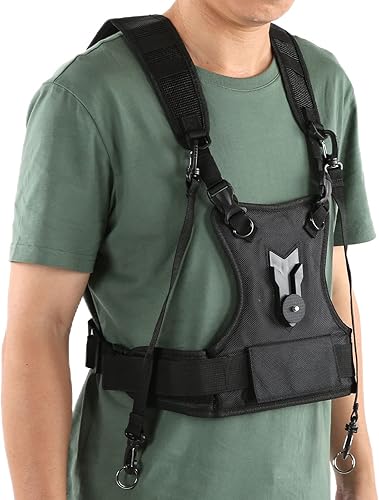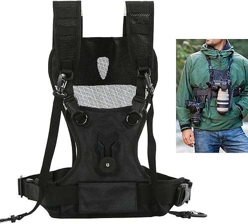 Cinghia per Doppia Fotocamera, di Giubbotto per Imbracatura Toracica per Trasporto Multicamera con Fondina Laterale e Cinghie di Sicurezza, per Fotocamere DSLR