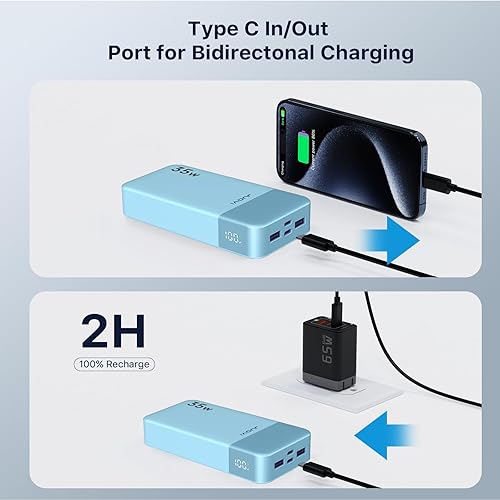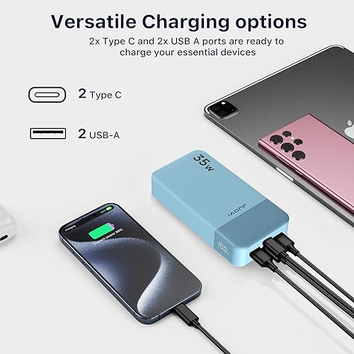 Portable Power Bank 20000mAh, JUOVI 35W caricabatterie portatile, batteria di ricarica rapida, PD3.0 QC4.0 batteria esterna del telefono con display LED per iPhone 16 15, Galaxy, Tablet, Switch, ecc