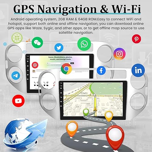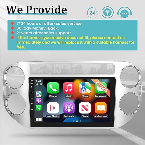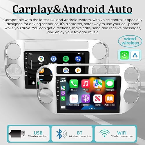 NHOPEEW Autoradio Android 2+32G per VW per Tiguan 2010-2015 Carplay Wireless e Android Auto, Radio 2.5D 9 Pollici Touchscreen, GPS WiFi HiFi FM Bluetooth + AHD Telecamera di retromarcia e Microfono