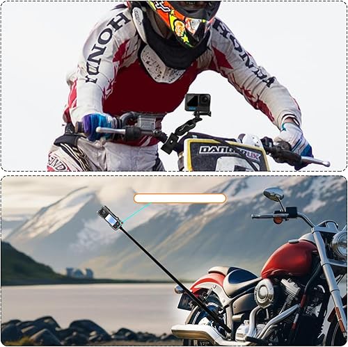 Moto Montaggio Kit con 47' Invisibile Bastone Compatibile per Insta 360 X4 X3 X2 X RS Pesante Dovere Doppio Morsetto Macchina Fotografica Bicicletta ATV RV Kit Compatibile per Gopro 13/12/11/10/9/8/7