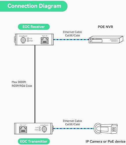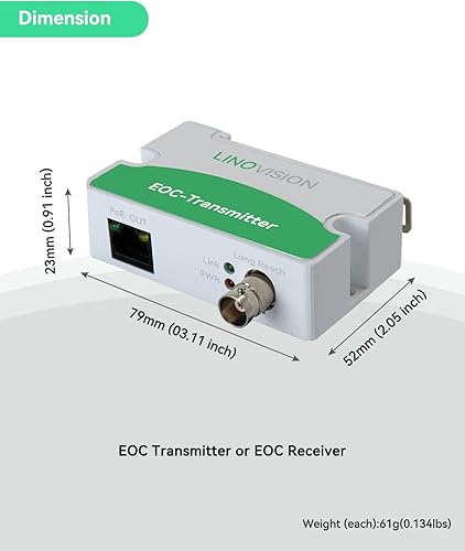 LINOVISION Convertitore POE su coassiale EOC Max 3000 piedi Potenza e trasmissione dati su cavo coassiale per l'aggiornamento del sistema di sorveglianza analogico al sistema di sorveglianza IP