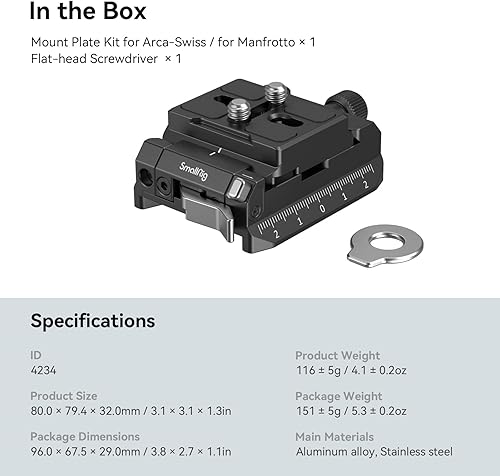 SMALLRIG Kit Piastra di Montaggio con Piastra Superiore per Arca-Swiss e Piastra Inferiore per Manfrotto Tipo, Compatibile con la Serie per DJI RS - 4234