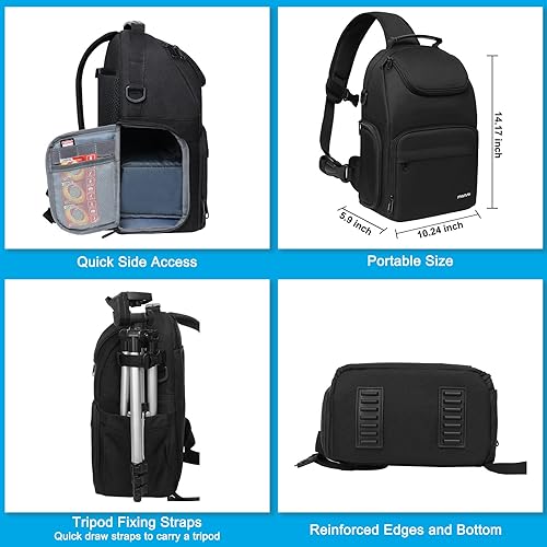 MOSISO Zaino Fotografico, Custodia per Fotocamera DSLR/SLR/Mirrorless Zaino a Tracolla per Fotografi con Treppiede Supporto&Inserti Rimovibili&PU Maniglia Compatibile con Canon/Nikon/Sony, Nero