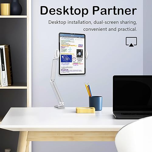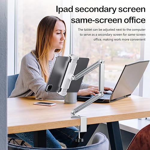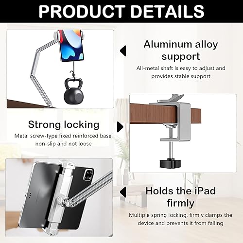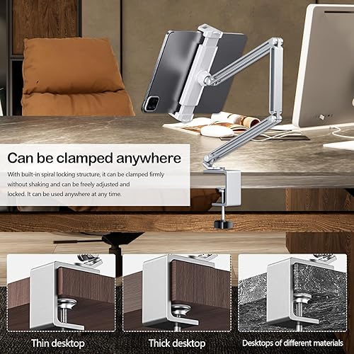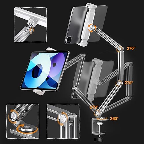 Supporto Tablet, Porta Tablets in Alluminio per Scrivania iPad Stand Regolabile Porta Tablet Letto con Clip Girevole 360° Supporto per 4-13 Pollici Smartphone Pieghevole per Letto Divano e Ufficio