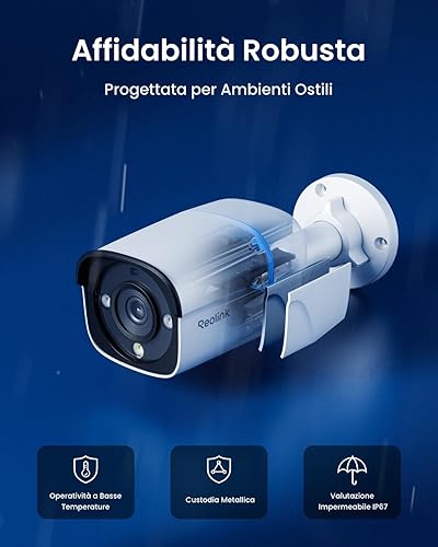 Reolink 4K Telecamera PoE Esterno Professionale, Grandangolo Diagonale 125°, Rilevamento di Uomo/Veicolo/Animale, Protezione Perimetrale, Audio Bidirezionale, Faretto Integrato, Impermeabile, RP-PCB8M
