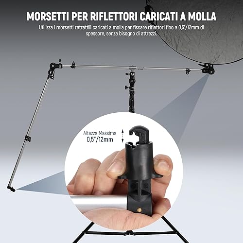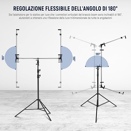 NEEWER Supporto per Riflettore Triplo per Stativo Fotografico, Porta Riflettore Tri Telescopico da 108cm, Traversa Braccio Estensibile, Incli a 180° per Riflettore Pieghevole Stativo Ritratto, ST-RF3