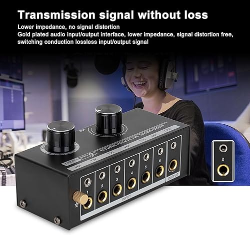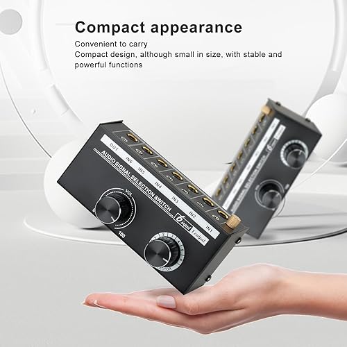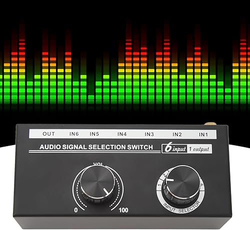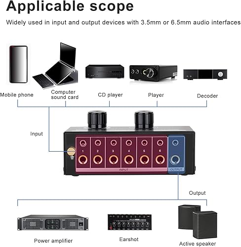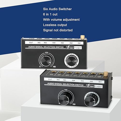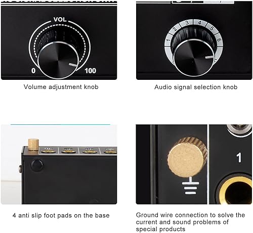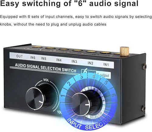 Hapivida Switch Audio a 6 Porte Scatola Commutatore Splitter Audio 6 Ingressi 1 Uscita con Controllo del Volume per Telefono, Altoparlante Portatile, Cuffie, Computer PC