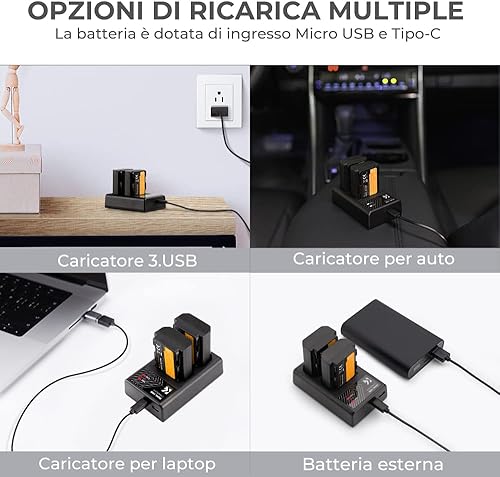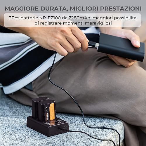 K&F Concept NP-FZ100 batteria per fotocamera (2 pezzi) con caricatore USB doppio, compatibile con Sony A7III A7RIII A7RIV, A9, Alpha9S, A9S, Sony A7R3, Sony A7R4 ZV-E1
