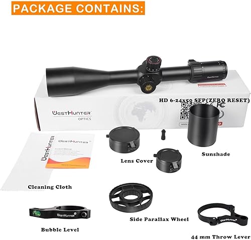 WestHunter Optics HD 6-24x50 SFP Precisione Miri telescopici, Tubo da 30 mm, Secondo piano focale 1/10 MIL, esclusivo per gare sportive a lunga distanza
