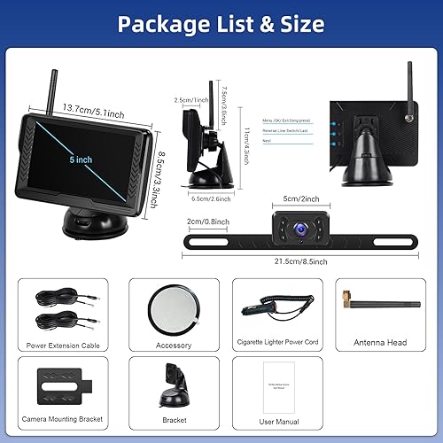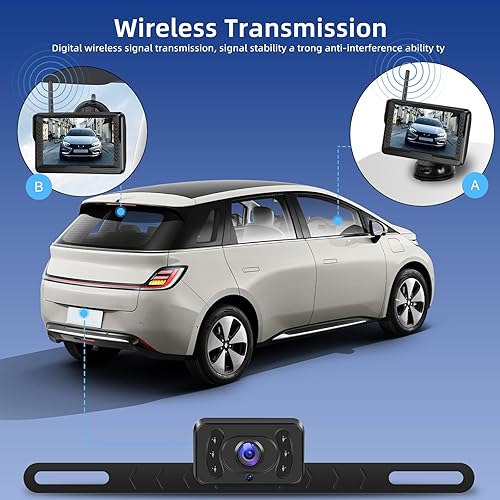 Set di Telecamere Retromarcia Senza Fili 5 pollic - Monitor per con telecamera di backup grandangolare senza fili IP69 impermeabile per la visione notturna - immagine di retromarcia Filp per auto SUV