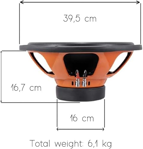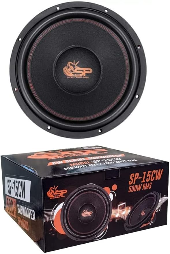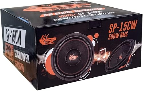 1 subwoofer SP AUDIO SP-15CW SP15CW subwoofer 15' 38 cm 380 mm diametro doppia bobina dvc 2+2 ohm 500 watt rms 1000 watt max 86 db cofano auto, 1 pezzo