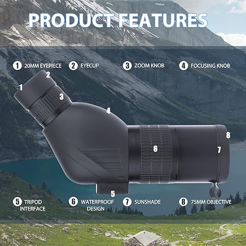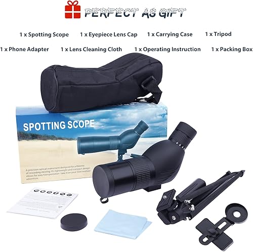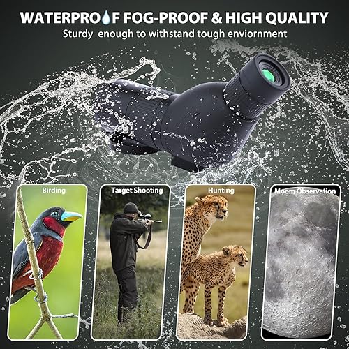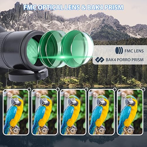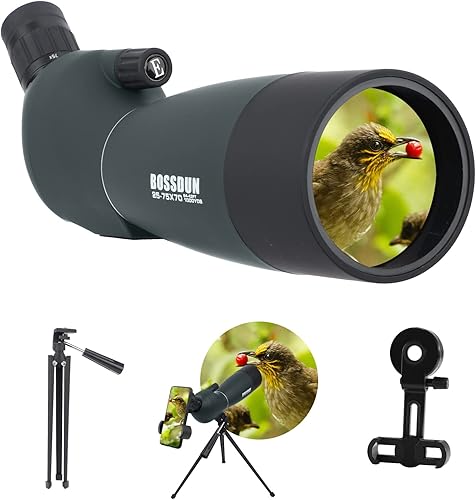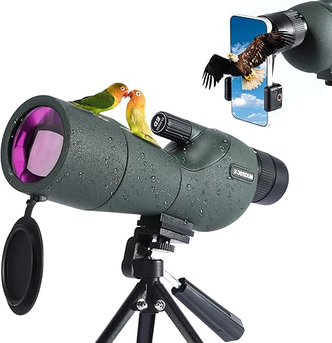 Cannocchiale, telescopio impermeabile con treppiede con prisma BAK4, adattatore per telefono, per il tiro al bersaglio l'osservazione degli uccelli e la caccia alla fauna selvatica (75green)