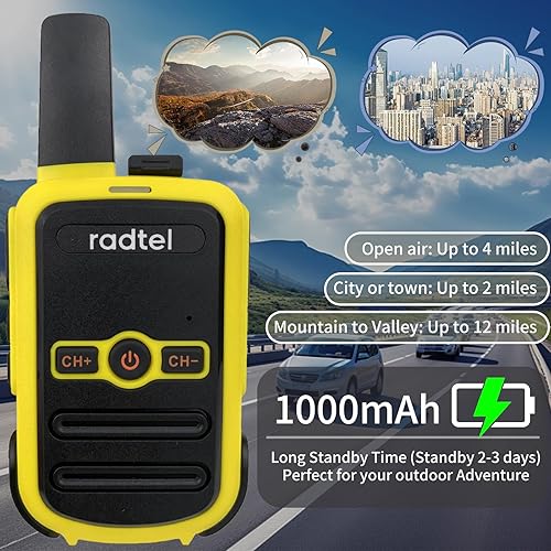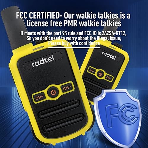 Radtel RT12 Walkie Talkie Ricaricabile per Adulti Portatile a Lungo Raggio Senza Licenza PMR 446 Radio Ricetrasmettitore 16CH Vivavoce VOX per Escursioni in Campeggio… (Giallo)