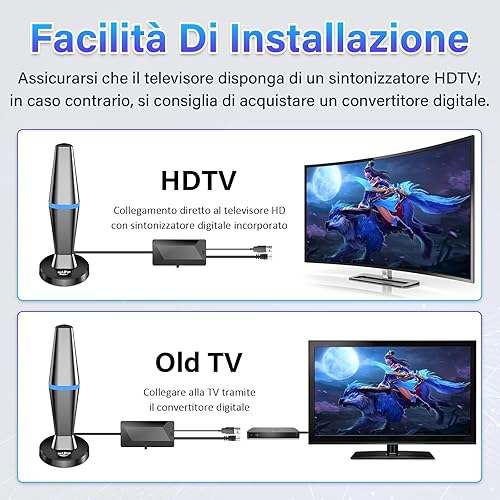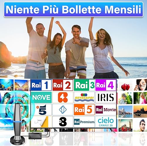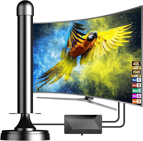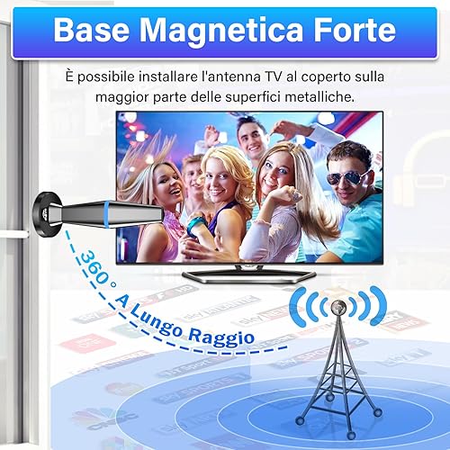 Antenna TV Interna Digitale,Antenne Potente Ricezione a Lunga Distanza, Base Magnetica per TV Portatili, Supporto 4K 1080p VHF UHF DVB-T/DVB-T2-All TVs