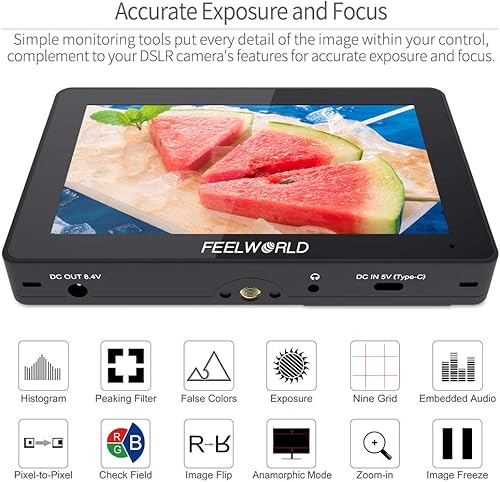 Feelworld F5 PRO V2 5.5 Pollici Camera Field Monitor 3D LUT DSLR Small Full HD 1920x1080 IPS Video Peaking Focus Assist 4K HDMI / 5V Type-c Input