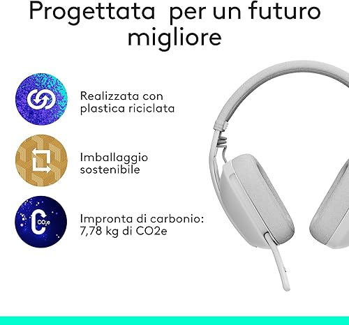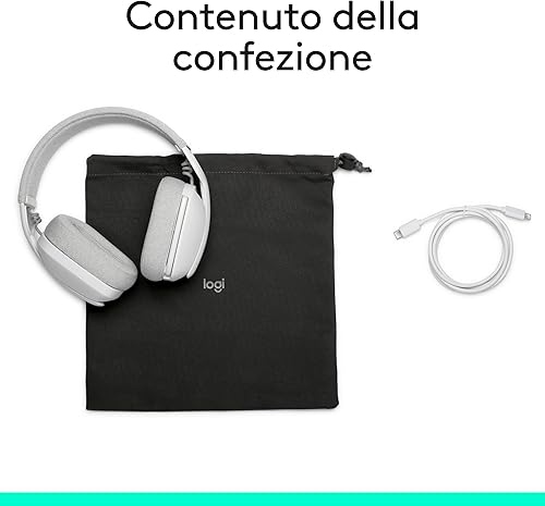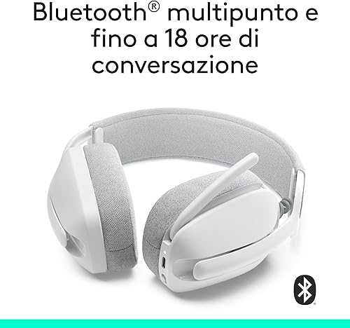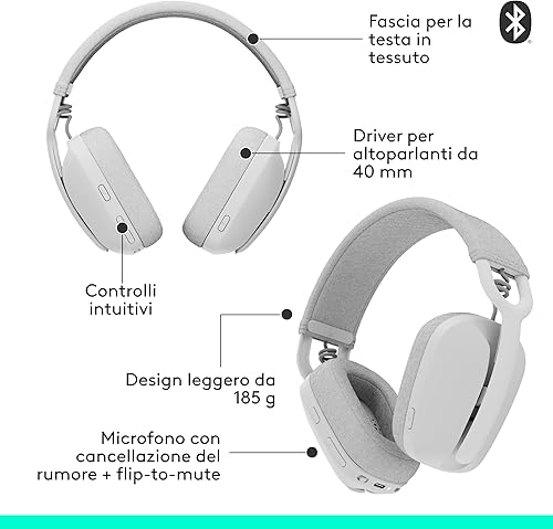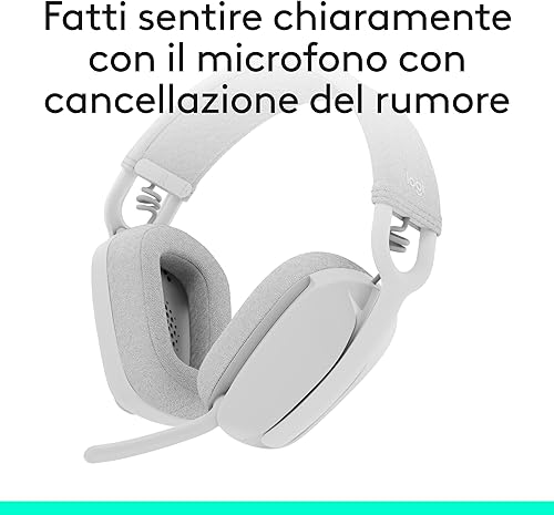 Logitech Zone Vibe 100 Cuffie Wireless Over-Ear Leggere con Microfono con Eliminazione del Rumore, Auricolare Bluetooth Multipoint, Compatibile con Teams, Google Meet, Zoom, Mac/PC - Bianco