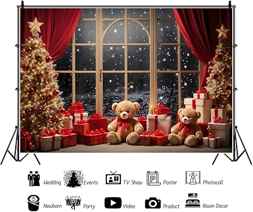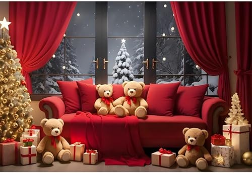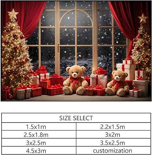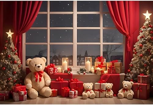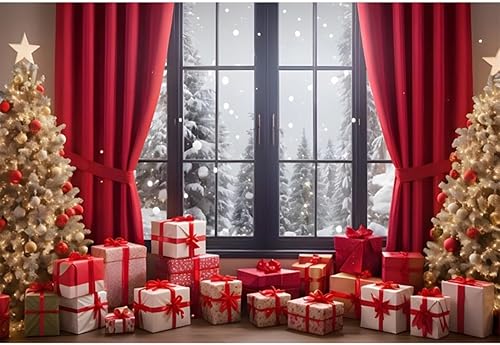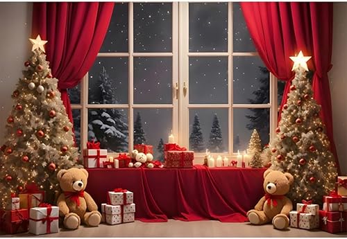 YongFoto 3x2m Finestra invernale Fondali fotografici Interni Albero di Natale Regalo Giocattolo di La Finestra Natale Notte silenziosa Sfondo Tema familiare Foto Studio Spara oggetti di scena
