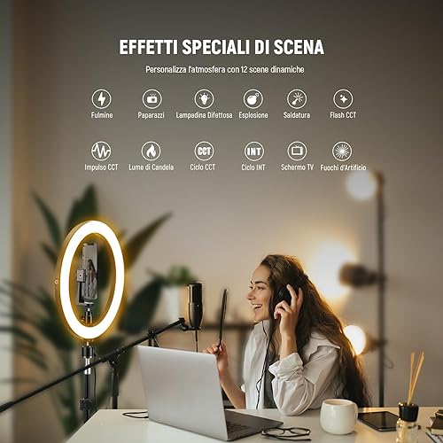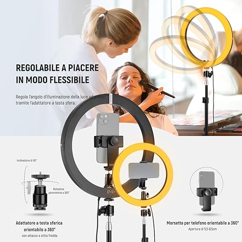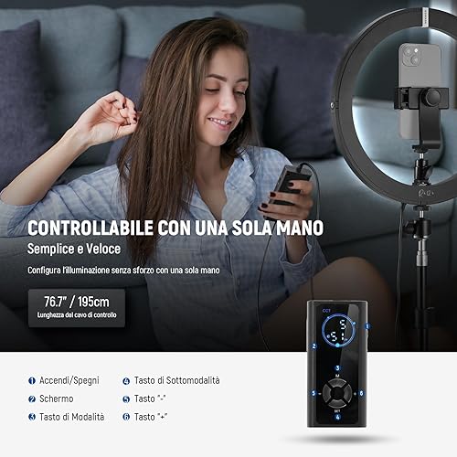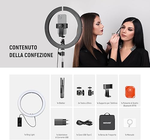 NEEWER 12' LED Ring Light per Telefono ad Alta Potenza da 24W + Stativo 71', Bicolore 2900K-7000K, Ingresso PD USB C, CRI97+ 1810lux/0,5m 12 Scene per Trucco Streaming Live Chiamate Zoom TikTok, RH12B