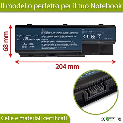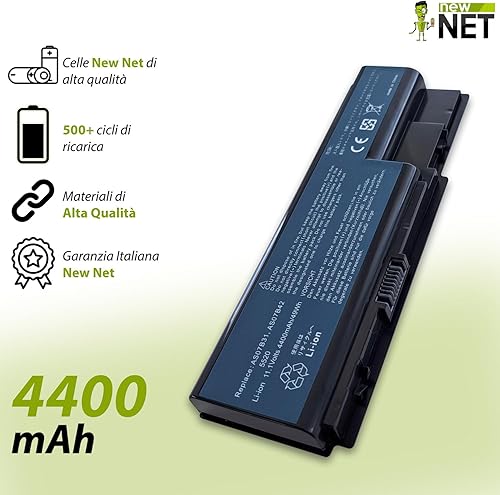 new net - Batteria AS07B31 Compatibile con Acer A5520D, AK.006BT.019, AK.008BT.055, AS07B32, AS07B41, AS07B42, AS07B51, AS07B52, AS07B61, AS07B71 [10.8-11.1V - 49Wh - 4400mAh]