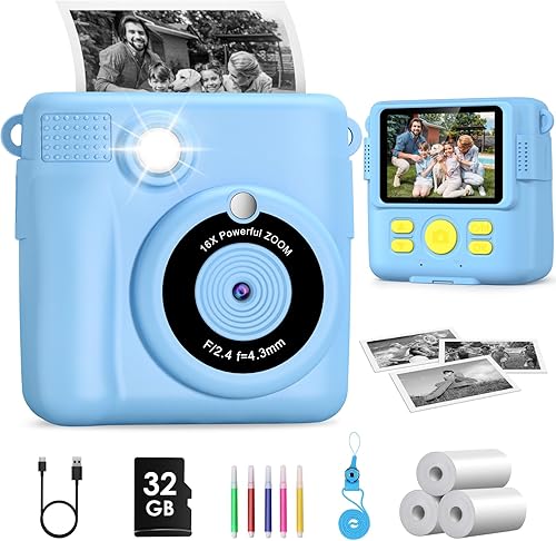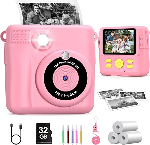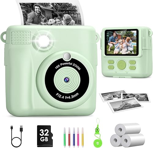 GREENKINDER Macchina Fotografica Bambini Istantanea, 3,0 Pollici 14MP Fotocamera Istantanea Bambini con 32GB Scheda, 1080P Fotocamera Digital per Bambini, Giocattolo Regalo per Bambino da 3-12 Anni