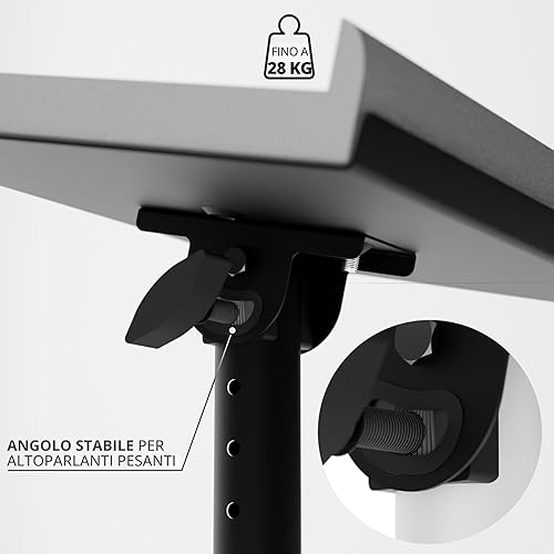 supporto per casse robusto – Set con assorbitore in gommapiuma, inclinabile ±20°, capacità fino a 28 kg – ideale per scrivania, studio di registrazione o tavolo da DJ