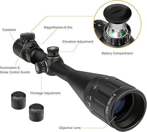 RFS-21 Cannocchiale da puntamento 6-24x50 mm con ottica illuminata rossa e verde Cannocchiale con reticolo a telemetro