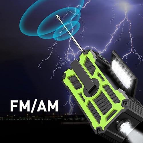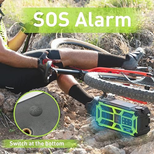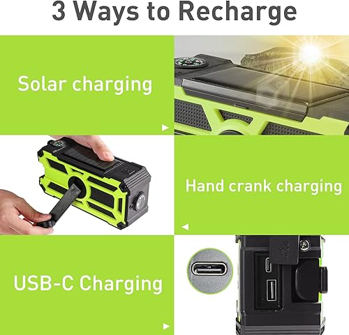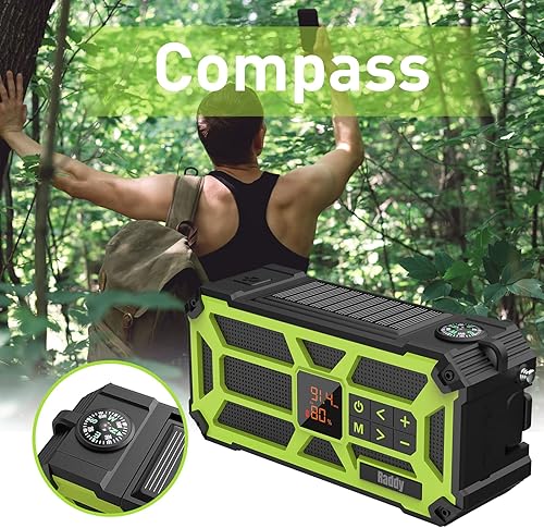 Raddy SW5 Radio Dinamo con Ricarica Manuale Powerbank da 5000mAh Radio Impermeabile IPX5 AM/FM Portatile di Emergenza ad Solare con Bussola, Torcia, Allarme SOS per Campeggio ed Escursioni