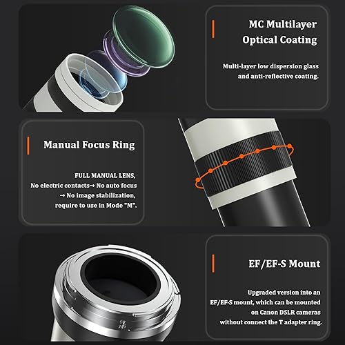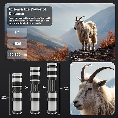 BENOISON Teleobiettivo per Sony E, 420-800mm Zoom, Messa a Fuoco Manuale (MF) per Sony A7C A7R A7S A7 A9 A6700 A6600 A6500 A6400 A6300 A6100 A6000 A5100 A5000 NEX-7 NEX-6 NEX-5 ZV-E10 (per Sony E)