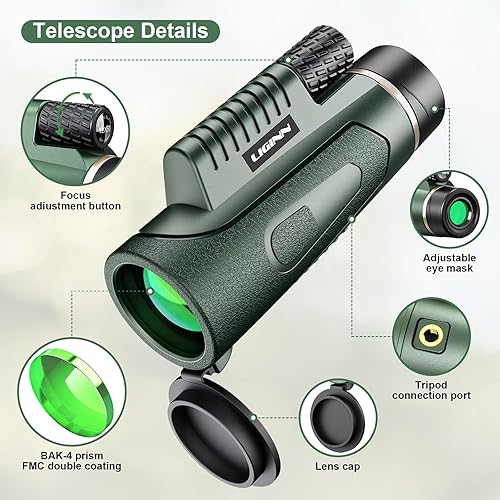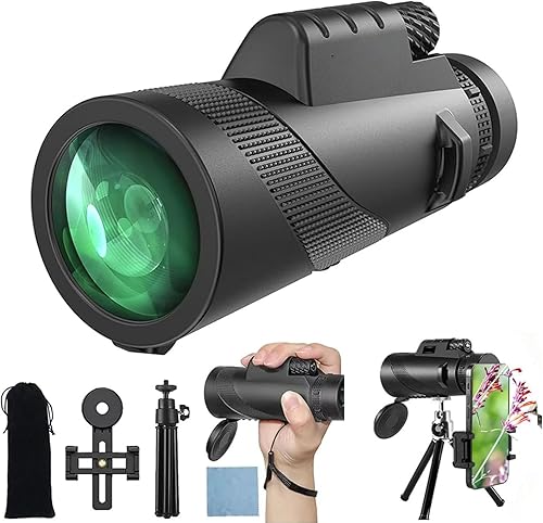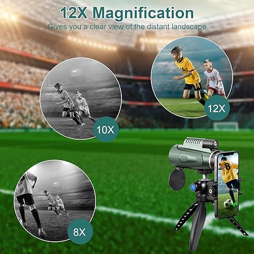 Auricase Telescopio Monoculare 12x50 ad alta potenza, monocolo con visione più ampia per adulti e bambini con prisma BAK4 e lente FMC, adatto per il birdwatching, escursionismo, campeggio (Nero)