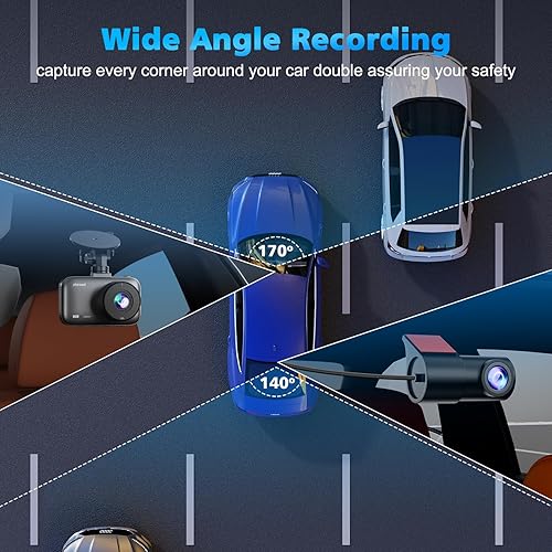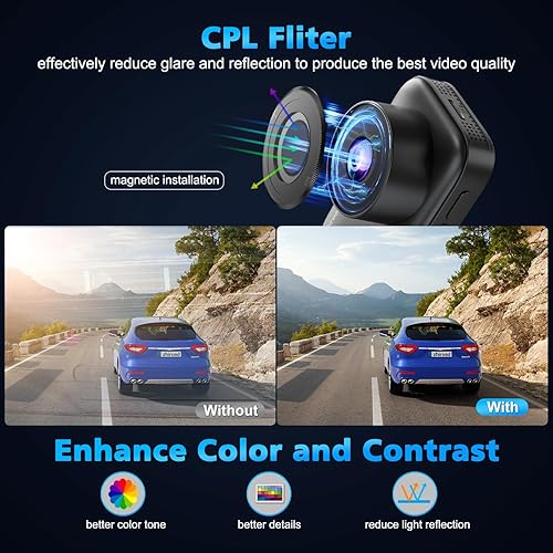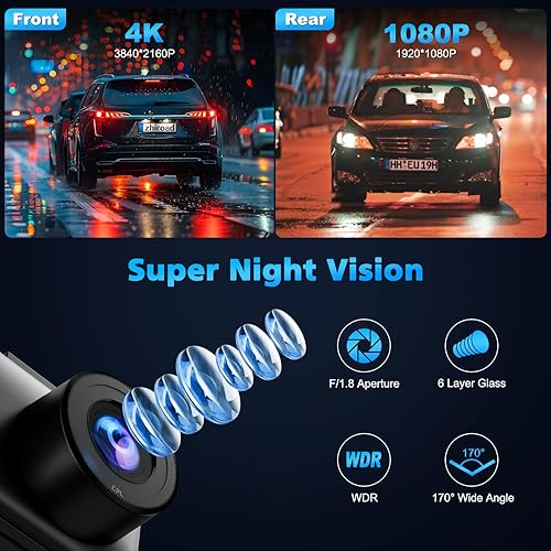 Dash Cam Auto Doppia 4K+1080P con Filtro CPL,Dashcam Schermo da 3 pollici,G-Sensor,Visione Notturna,WDR,Monitoraggio Parcheggio 24H,Telecamera Auto Wi-Fi,APP Control,64G SD, Registrazione in Loop