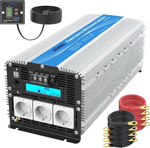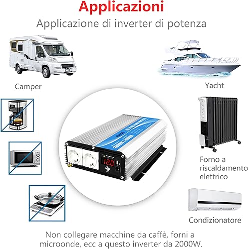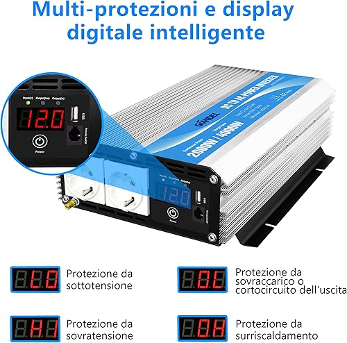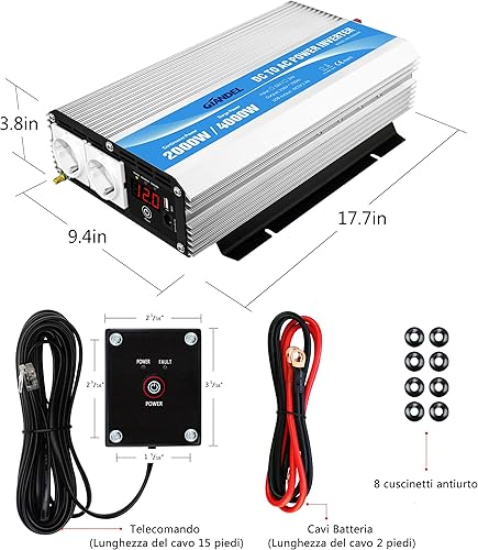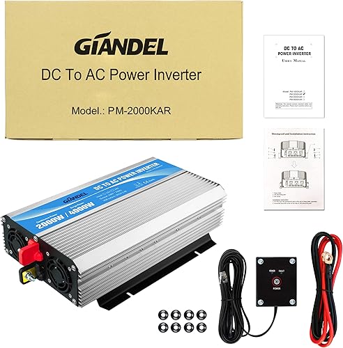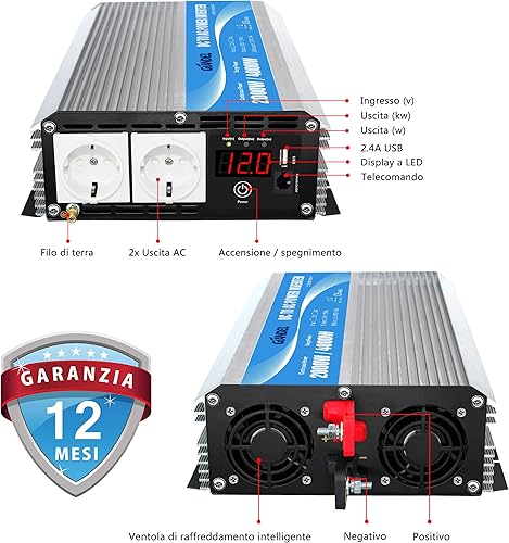 Giandel Power Inverter 2000W Onda Modificata Convertitore DC 12V a AC 220V 230V con telecomando & 2 presa AC e 2 Porte USB per auto,camion camper
