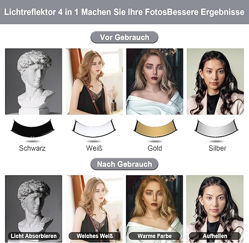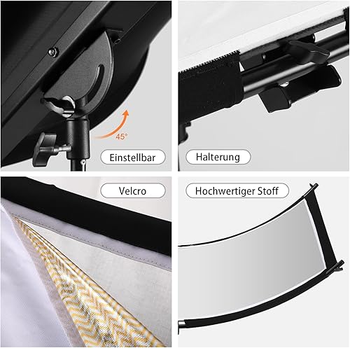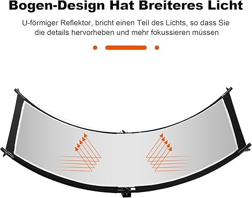 U Clamshell Riflettore di Luce Diffusore a Conchiglia forma di U 180x60cm con Borsa per il Trasporto,riflettori curvi a forma di U,nero/bianco/oro/argento per studio fotografico