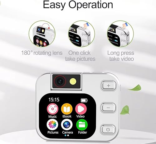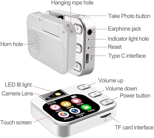 Uxsjakjsd Mini Fotocamera Digitale, Lettore MP3, Schermo Tattile da 2,01 Pollici, Type-C, Scatto Fotografico, Registrazione Video, Lettura di E-Book