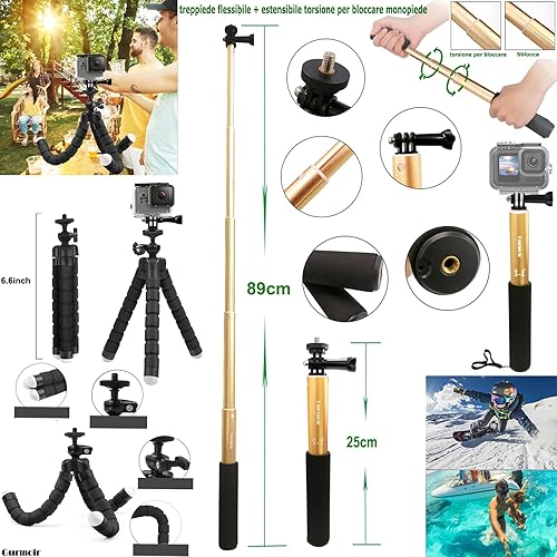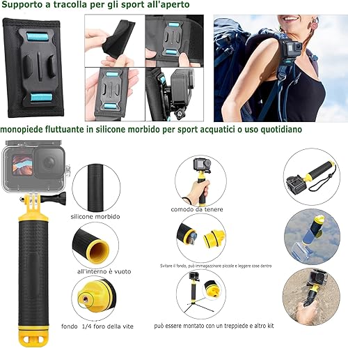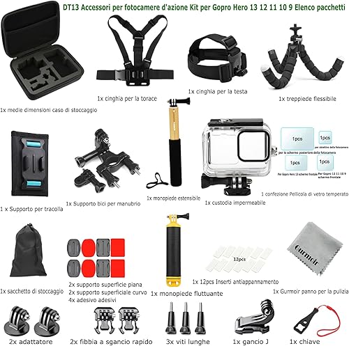 Gurmoir Kit di accessori per Gopro Hero13/Hero12/Hero11/Hero10/Hero9 Black, Custodia impermeabile Impugnatura Galleggiante Compatibile con Go Pro 13 12 11 10 9 camera(DT13)