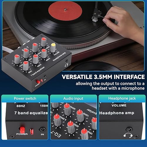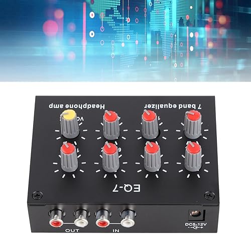 Equalizzatore Digitale a 7 Bande, Regolazione Bassi Alti 12dB, Doppio Canale con Chip Originali TI/ST, Compatibile con Cuffie, Equalizzatore Audio per Auto in Lega di Alluminio