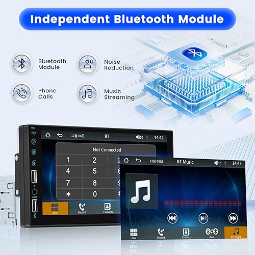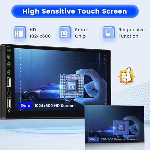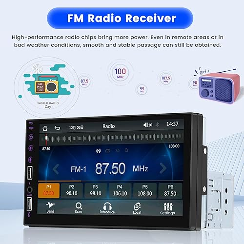 Hikity CarPlay Autoradio 1 DIN con Schermo, 7 Pollici 1 Din Stereo Auto Bluetooth con Android Auto Bluetooth Vivavoce FM AUX 2USB SWC Mirror Link + MIC + Telecamera Posteriore Impermeabile