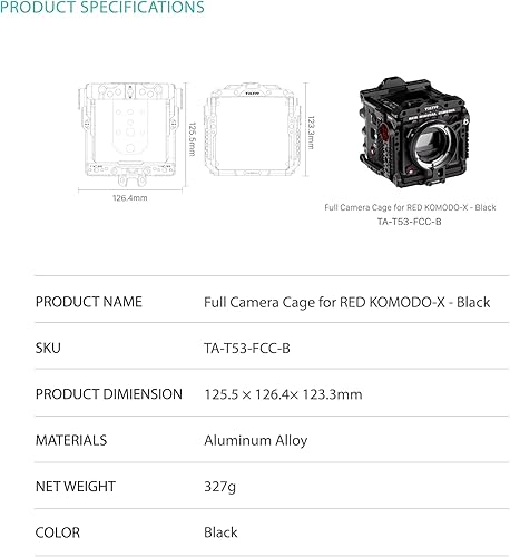 Tilta Gabbia per fotocamera completa compatibile con RED KOMODO-X con supporto adattatore obiettivo e piastra di base a sgancio rapido - Nero TA-T53-FCC-B