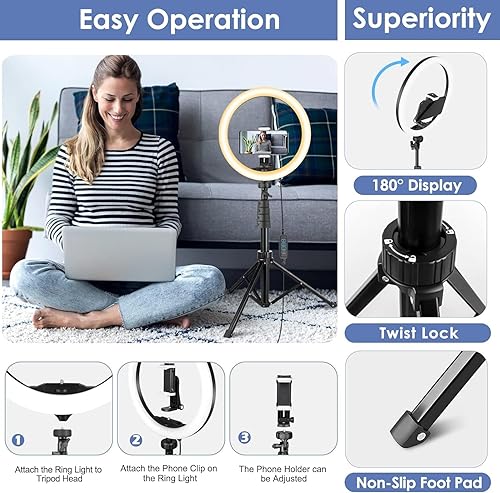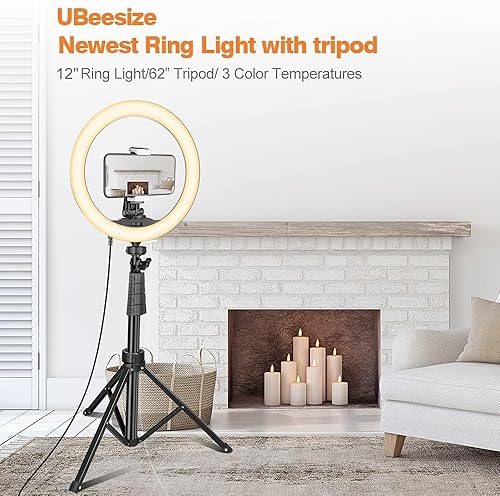 UBeesize Anello Luce con Treppiede, 12 Pollice Selfie Anello Luce con 62 Pollice Treppiede Stand per Live Stream/Trucco/YouTube Video/Fotografia