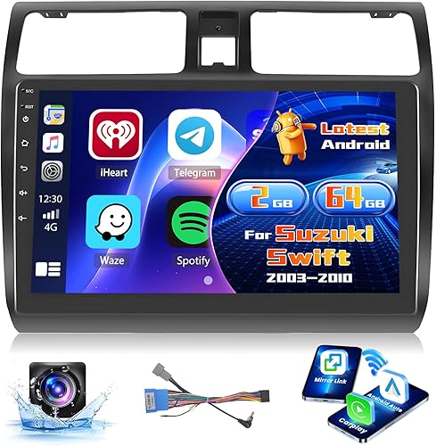 Inefala 4+64G Autoradio per Suzuki Swift 2003-2010 Android con Wireless CarPlay Android Auto, 10'' Schermo per Auto Soporta Bluetooth WIFI GPS FM/RDS 32EQ SWC AHD Telecamera Posteriore
