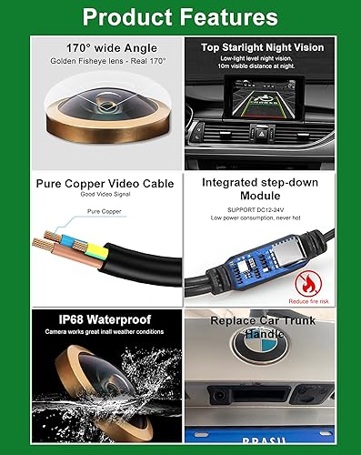 Ftradios Telecamera Per Retromarcia Impermeabile 170 Grandangolo HD Immagine A Colori Per BMW X1 F48 F49 X3 G08 X4 G02 X5 G05 X6 G06 3er 318i/320i /325i /328i /335i /330i/340i 2018-2020