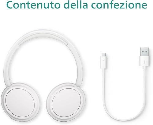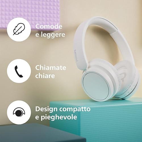 PHILIPS TAH5209WT Cuffie On-Ear wireless bluetooth leggere con isolamento acustico passivo - 65 ore di riproduzione, suono naturale, chiamate chiare, bassi dinamici, 2 ore di carica USB-C - Bianco
