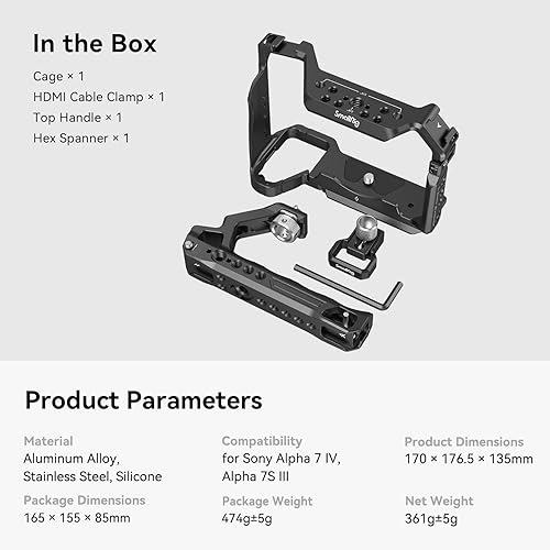 SMALLRIG A7 IV A7 S III A7R V Cage Kit con Maniglia Superiore per Sony Alpha 7 IV/Alpha 7R V/Alpha 7 S III - 3668B