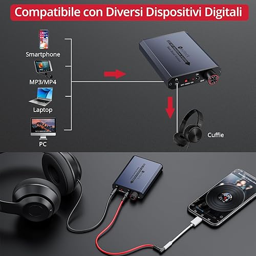 Neoteck Amplificatore per Cuffie da 3,5 mm con Potenziamento dei Bassi Amplificatore Portatile 16-150 Ohm AMP per Cuffie Audio per Telefoni, MP3, MP4 Computer PS4 PS5 Controller