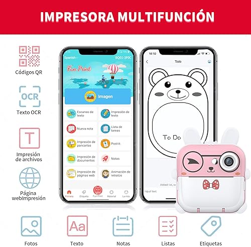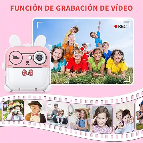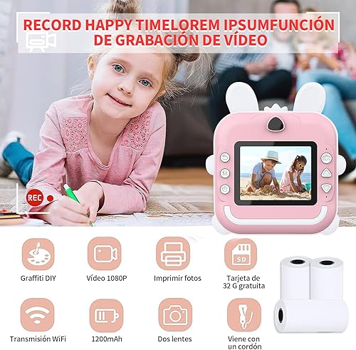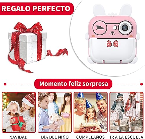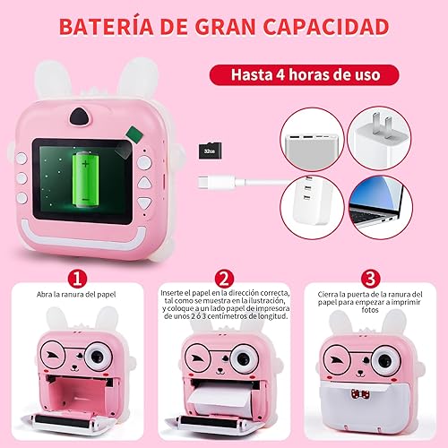 JESWO Macchina Fotografica Bambini Istantanea, Stampa Termica, Funzionalità di Registrazione Foto e Video HD, Inclusa Scheda SD da 32 GB, 3 Rotoli di Carta Termica e Adesivi