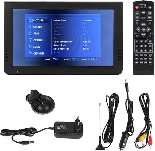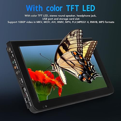 VBESTLIFE TV Digitale Portatile da 10 Pollici, Schermo TFT LED HD, per Auto, Roulotte, Campeggio, All'aperto o in Cucina, Batteria Integrata, Supporta TV Analogica, Scheda USB